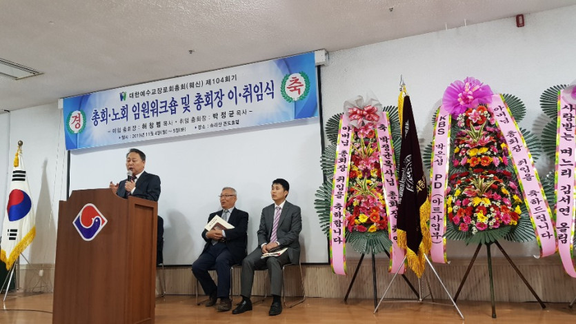 제104회기 총회장 박정균 목사 취임(2019. 11월, 속리산콘도호텔) 하늘맨123 0 6703 2020.02.05 11:25 제104회기 총회장 박정균 목사 취임(2019. 11월, 속리산콘도호텔)