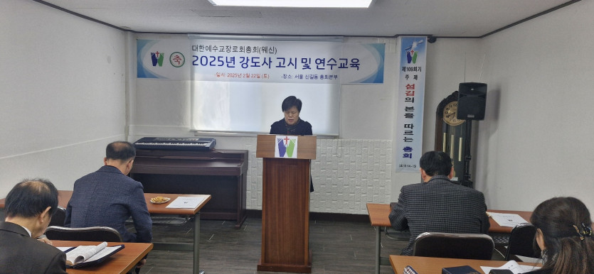 제109회기 강도사 고시 및 연수교육 최고관리자 0 1530 2025.02.22 20:20 제109회기 강도사 고시 및 연수교육 -일시:2025년 2월 22일(토) -장소: 총회본부 (서울 신길동 소재 )