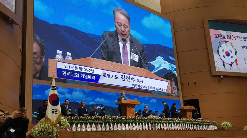 2024년 한국교회 3.1절 기념예배 참석 최고관리자 1 3305 2024.03.08 10:25 2024년 한국교회 3.1절 기념예배 참석 -일시: 2024년 2월 25일 주일 오후 4시 -장소: 연세중앙교회(윤석전 목사 시무) -총회장/총무 교단대표로 참석