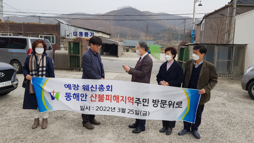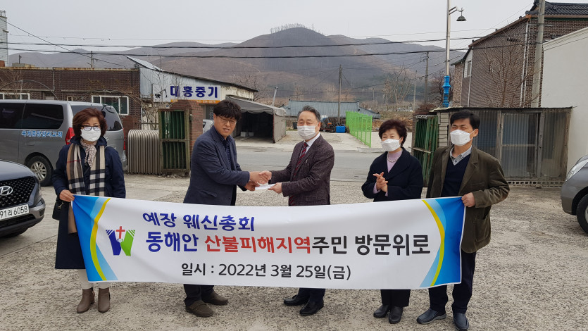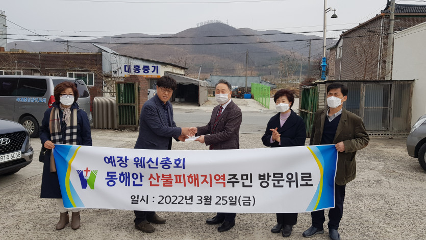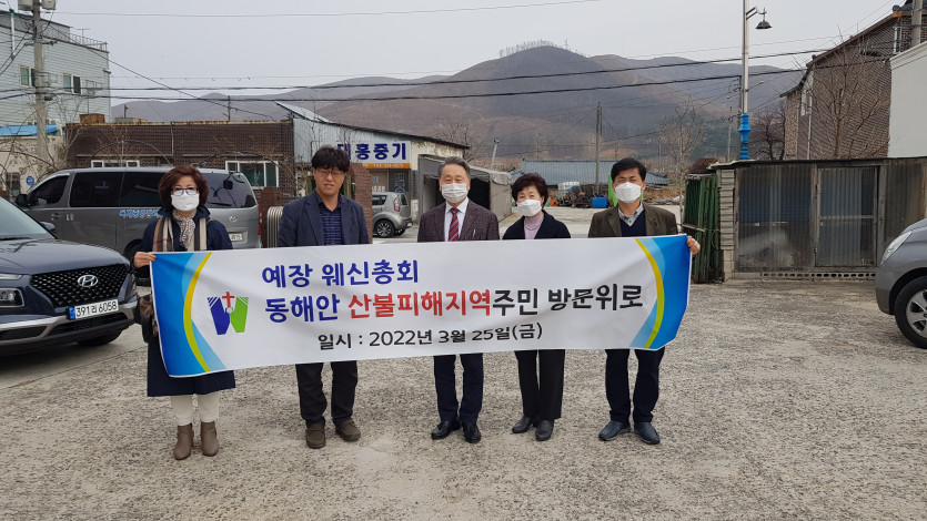 웨신총회 동해안 대형산불피해지역(강릉 옥계, 울진 북면)방문 성금/옷가지 전달(2022.3.25/금) 최고관리자 0 5365 2022.03.26 09:54 웨신총회 동해안 대형산불피해지역(강릉 옥계, 울진 북면)방문 성금/옷가지 전달(2022.3.25/금) -총회장 김헌수 목사/홍미표 사모님, 서기 이명만 목사, 부서기 이영선 목사, 총무 김복래 목사 동행